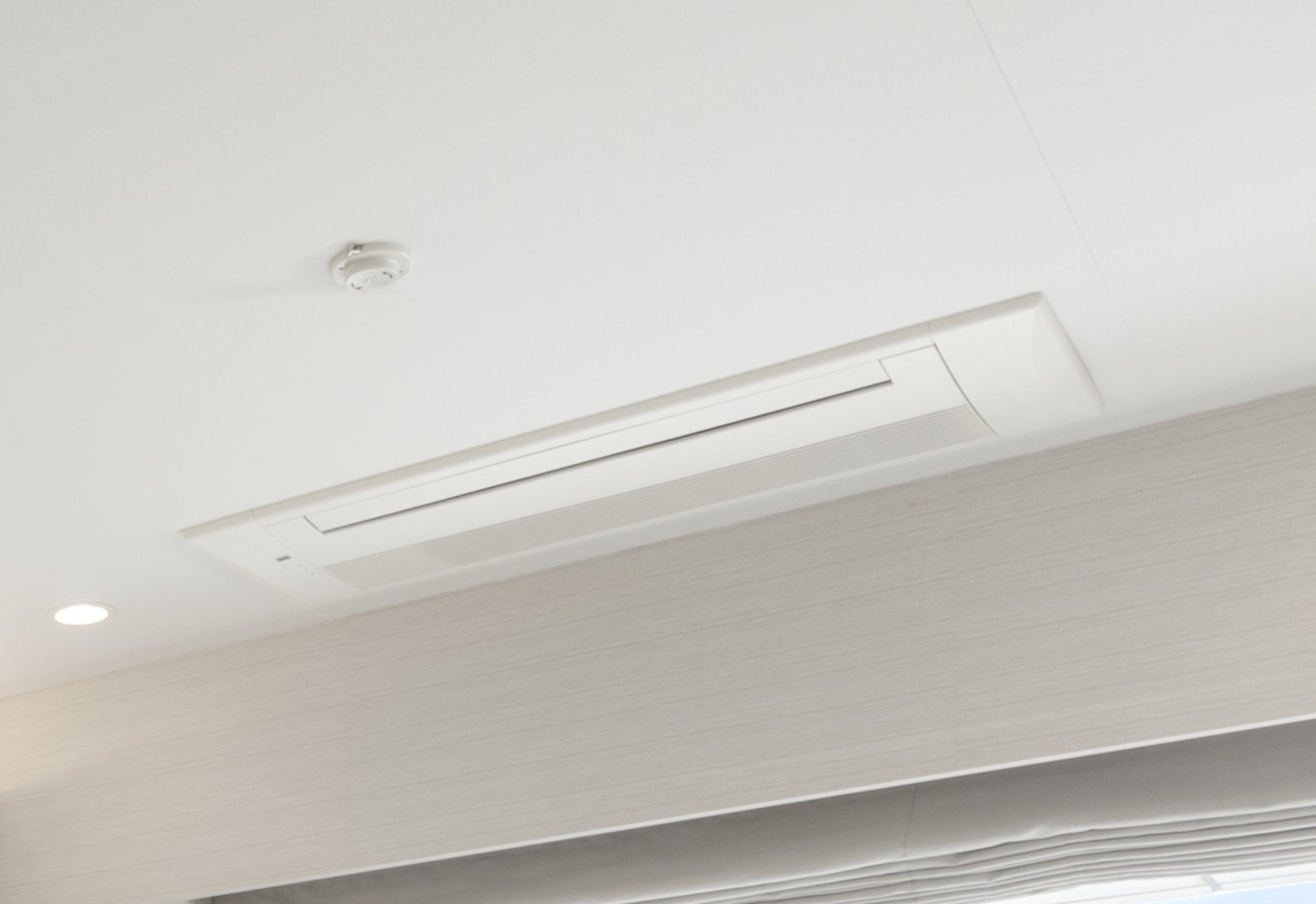 プレミアムフロア住戸のリビング・ダイニングには、天井埋め込み型のカセットエアコンを実装。居住空間としてのリビング・ダイニングの快適さを確保することはもちろん、居住空間の美観を損なうこともありません。