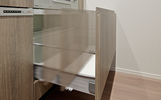 スライド収納には、ソフトクローズ機能が付いています。勢いよく閉めても、ゆっくり閉まり安心です。